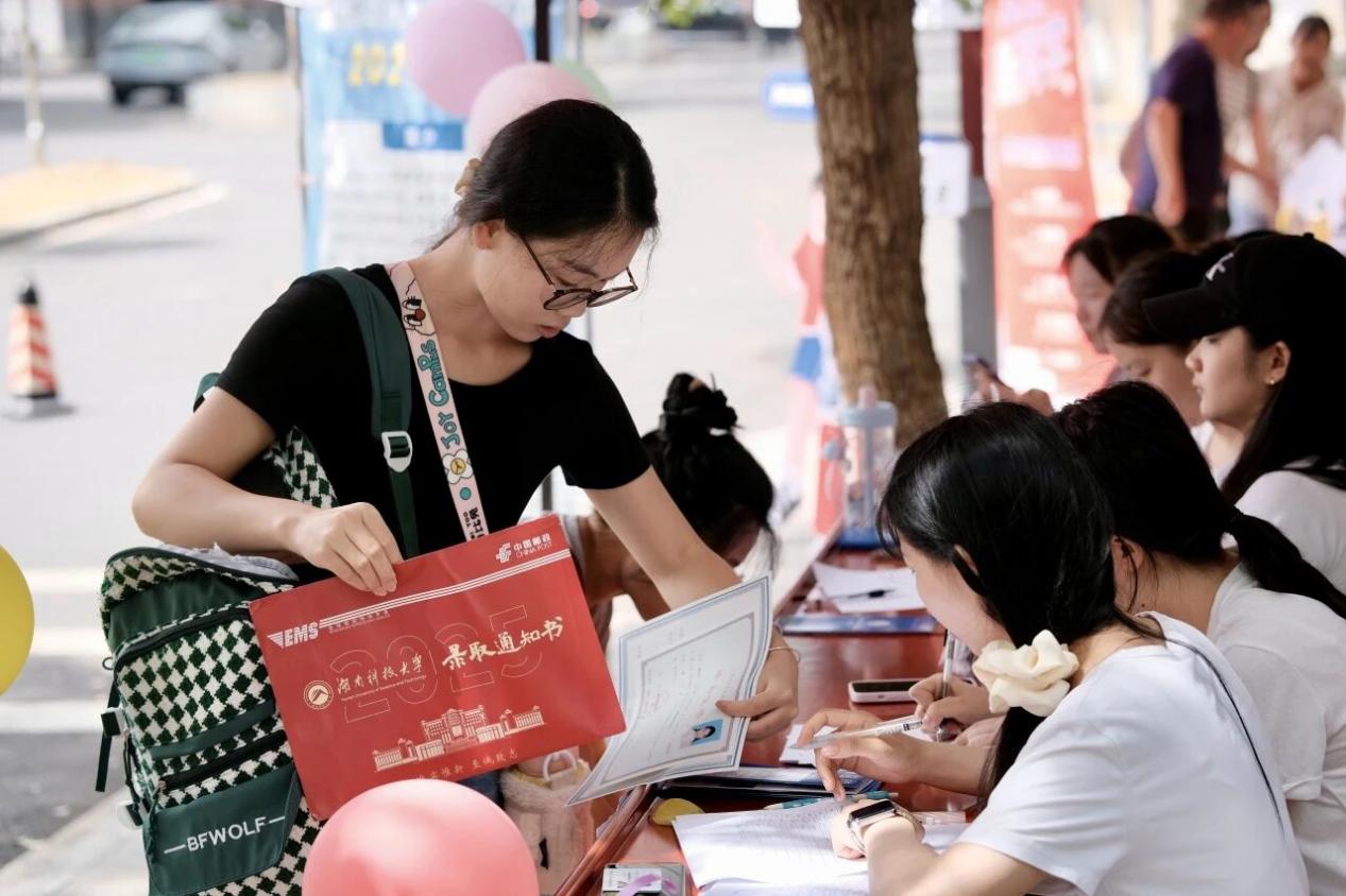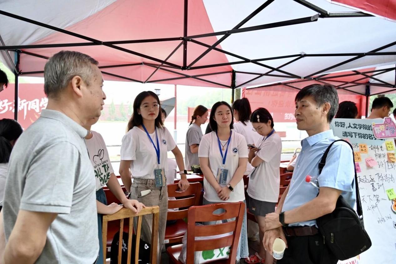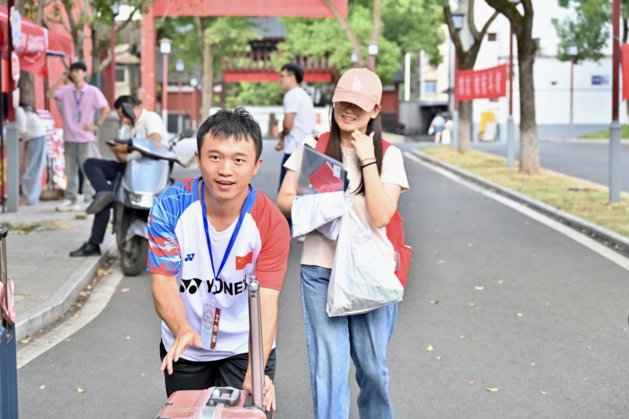 昭潭书院内,各学院迎新点的志愿者们忙碌的身影穿梭在校园的每个角落,他们搬行李、指路线、维秩序,用实打实的行动和热情传递关爱和温度。